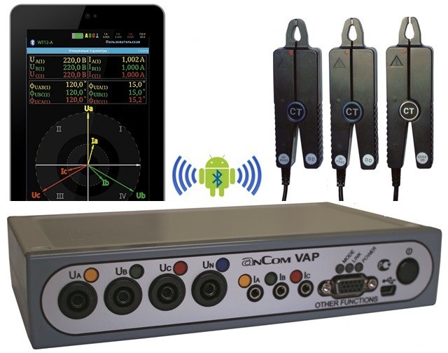 Трехфазный вольтамперфазометр (ВАФ) AnCom VAP используется для настройки и контроля фазочувствительных схем релейной защиты (РЗ) и противоаварийной автоматики (ПА) на предприятиях электрических сетей.